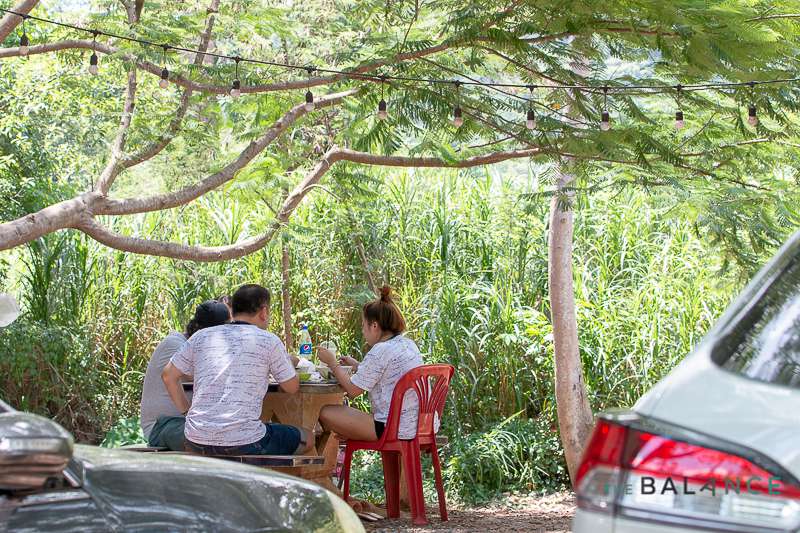 จากถนนธนะรัชต์มุ่งหน้าไปทางอุทยานแห่งชาติ ด้วยความตั้งใจที่จะขับชมบรรยากาศไปเรื่อยๆ ขณะเดียวกันก็มองหาร้านอาหารแวะรับประทานอาหารกลางวัน เราก็เห็นป้ายแว้บๆ ว่า “ก๋วยเตี๋ยวริมธาร” อยู่ในซอยเล็กๆ แถบบ้านคลองเพล เป็นร้านอาหารเล็กๆ ตั้งอยู่ริมลำธาร อ่านป้ายพบว่า “ร้านค้าชุมชนบ้านคลองเพล” อยู่ในเขต ต.หมูสี อ.ปากช่อง จ.นครราชสีมา ใกล้ๆ กับชุมชนบ้านท่ามะปรางค์ (เป็นอีกเส้นทางที่ลัดไปอุทยานแห่งชาติเขาใหญ่ได้)