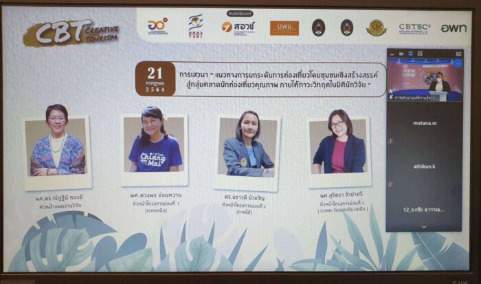นาวาอากาศเอก อธิคุณ คงมี ผู้อำนวยการองค์การบริหารการพัฒนาพื้นที่พิเศษเพื่อการท่องเที่ยวอย่างยั่งยืน (องค์การมหาชน) หรือ อพท. เปิดเผยว่า อพท.ได้ร่วมกับภาคีเครือข่าย ทั้งกองทุนส่งเสริมวิทยาศาสตร์ วิจัยและนวัตกรรม (ววน.) สำนักงานคณะกรรมการส่งเสริมวิทยาศาสตร์ วิจัยและนวัตกรรม(สกสว.) หน่วยบริหารและจัดการทุนด้านการเพิ่มความสามารถในการแข่งขันของประเทศ (บพข.) สำนักงานสภานโยบาย การอุดมศึกษา วิทยาศาสตร์ วิจัยและนวัตกรรมแห่งชาติ (สอวช.) คณาจารย์นักวิจัย และผู้นำชุมชน ที่อยู่ใน 4 ภูมิภาคของไทย ประกอบด้วย ภาคเหนือ ภาคใต้ ภาคกลาง และภาคอีสาน เปิดผลงานวิจัยโครงการการยกระดับการท่องเที่ยวโดยชุมชนเชิงสร้างสรรค์สู่ตลาดนักท่องเที่ยวคุณภาพ เพื่อรองรับสถานการณ์การเปลี่ยนแปลงภายหลังภาวะวิกฤต และกิจกรรมการจับคู่พันธมิตรชุมชนท่องเที่ยวเชิงสร้างสรรค์ (Creative CBT Business Matching) ที่จะนำไปสู่ช่องทางการตลาดให้กับชุมชนใน 4 ภาค ให้มีความพร้อมที่จะรองรับการท่องเที่ยวในรูปแบบวิถีใหม่ ( New Normal ) ภายหลังจากสถานการณ์โควิด 19 คลี่คลาย และสามารถดำเนินกิจกรรมการท่องเที่ยว และเศรษฐกิจกลับมาได้อีกครั้ง ภายใต้แนวทางการส่งเสริมการท่องเที่ยวชุมชนที่มีมาตรฐานพร้อมให้บริการรองรับตลาดคุณภาพด้านการท่องเที่ยว