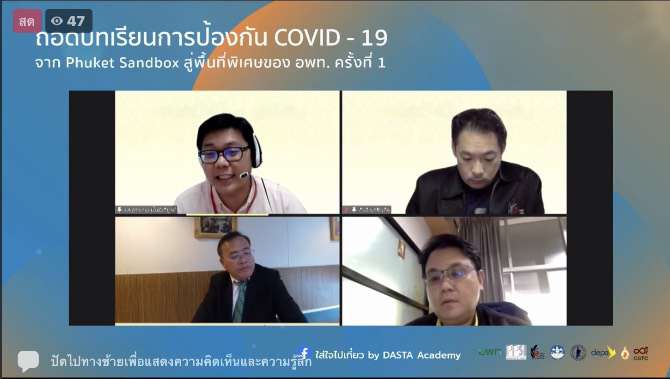 นาวาอากาศเอก อธิคุณ คงมี ผู้อำนวยการองค์การบริหารการพัฒนาพื้นที่พิเศษเพื่อการท่องเที่ยวอย่างยั่งยืน (องค์การมหาชน) หรือ อพท. เปิดเผยว่า ได้ร่วมกับภาคีเครือข่ายด้านการพัฒนาท่องเที่ยวยั่งยืน และ ผู้เชี่ยวชาญ 6 องค์กร ประกอบด้วย สำนักงานส่งเสริมเศรษฐกิจดิจิทัลเขตพื้นที่ภาคใต้ สภาอุตสาหกรรมท่องเที่ยวแห่งประเทศไทย มหาวิทยาลัยแม่ฟ้าหลวง ผู้เชี่ยวชาญด้านการประเมินความยั่งยืนตามเกณฑ์การท่องเที่ยวอย่างยั่งยืนโลก (GSTC) สมาคมการตลาดท่องเที่ยวไทย มูลนิธิสถาบันศึกษานโยบายสาธารณะ เปิดเวทีสัมมนาขับเคลื่อนภาคการท่องเที่ยวและบริการของไทย ในหัวข้อเรื่อง “ถอดบทเรียนการป้องกัน Covid-19 จาก Phuket Sandbox สู่พื้นที่พิเศษและเมืองรอง” ครั้งที่ 1 ผ่านระบบ Facebook Live by DASTA Academy เพื่อแลกเปลี่ยนประสบการณ์ และความคิดเห็น และสร้างกลไกการมีส่วนร่วมที่จะไปสู่แผนการบริหารจัดการท่องเที่ยวเพื่อรองรับการให้บริการท่องเที่ยววิถีใหม่ ต้อนรับฤดูกาลการท่องเที่ยวในช่วงปลายปี 2564 ผ่านการบูรณาการทำงานร่วมกันทุกหน่วยงาน โดยการถอดกรณีศึกษาของ Phuket Sandbox จะดำเนินการทั้งในมิติความสำเร็จในการบริหารจัดการด้านความปลอดภัย และส่วนที่ต้องมีการพัฒนาต่อยอด เพื่อการบริการที่มีประสิทธิภาพที่จะนำไปสู่การประยุกต์ใช้ให้เข้ากับบริบทของพื้นที่พิเศษเพื่อการท่องเที่ยวอย่างยั่งยืนในจังหวัดอื่นๆ ทั่วประเทศ