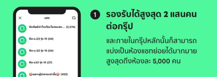 - รองรับได้สูงสุด 2 แสนคนต่อกรุ๊ป