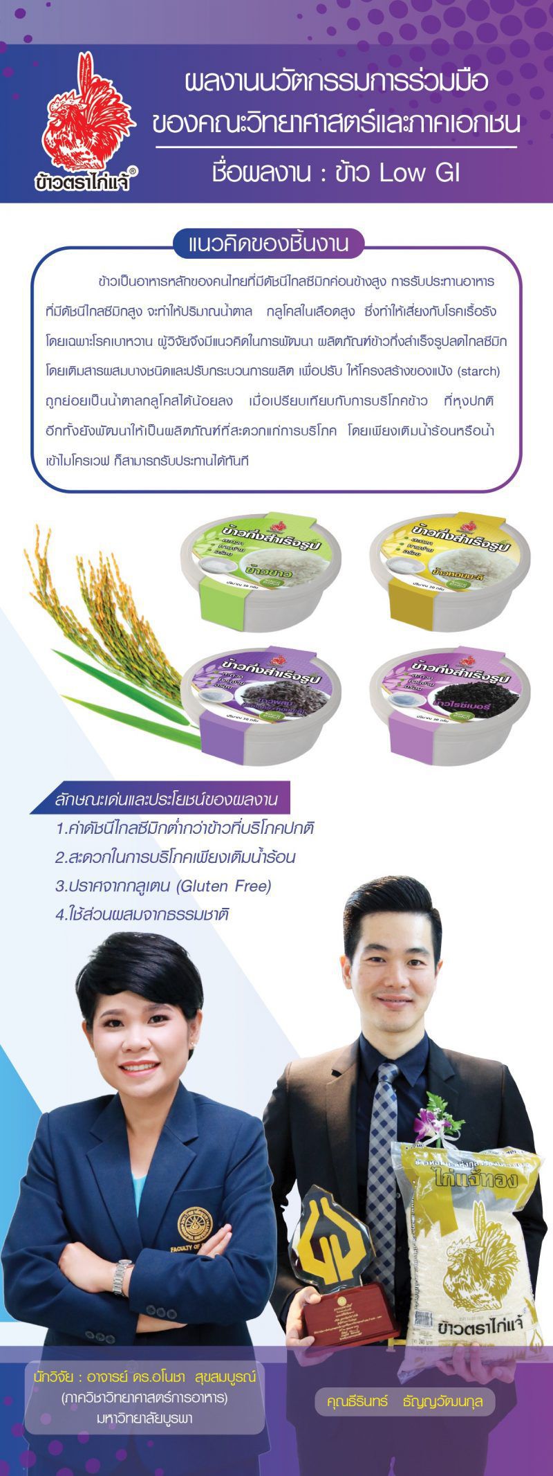 ผศ.ดร.เอกรัฐ ศรีสุข คณบดีคณะวิทยาศาสตร์ มหาวิทยาลัยบูรพา กล่าวว่า ความร่วมมือกันในครั้งนี้ มหาวิทยาลัยบูรพาได้เน้นมุมมองด้านวิทยาศาสตร์ นำเทคโนโลยีใหม่ๆ ที่จะนำไปสู่การสร้างนวัตกรรมสินค้า ขณะที่ผู้ประกอบการจะเน้นมุมมองด้านพาณิชย์ ที่จะเพิ่มมูลค่าให้กับสินค้าและผลิตภัณฑ์ของตนเอง และเพื่อประโยชน์สูงสุดของผู้บริโภค พิจารณาความเป็นไปได้ตามมิติที่ต่างถนัด ทั้งนี้ได้มีการทำโครงการนำร่องที่จับคู่กันระหว่างผู้ประกอบกับนักวิจัยทั้งสิ้น 7 โครงการ