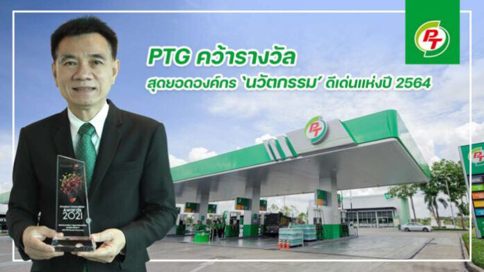 PTG คว้ารางวัล สุดยอดองค์กร ‘นวัตกรรม’ ดีเด่นแห่งปี 2564 ประเภทกลุ่มสถานีบริการน้ำมัน จากโครงการ “PT ฉีดพ่นน้ำยาฆ่าเชื้อไวรัส COVID-19” ตอบโจทย์ความต้องการของผู้บริโภคยุคใหม่ จัดโดยนิตยสารบิสิเนสพลัส ร่วมกับวิทยาลัยการจัดการ มหาวิทยาลัยมหิดล