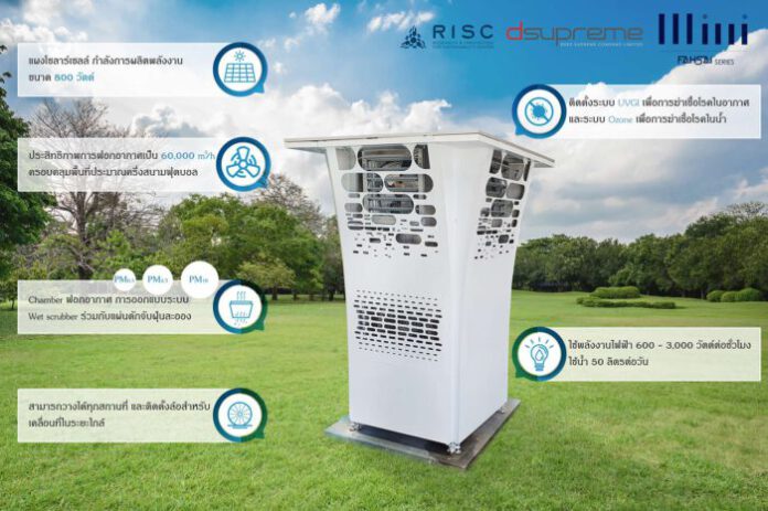RISC เปิดตัว “ฟ้าใส มินิ” หอฟอกอากาศกำจัดฝุ่นและเชื้อโรค เพื่ออากาศที่ดีของเมือง ต่อยอดงานวิจัย พร้อมจำหน่ายโดย Dsupreme ธันวาคม 2564 นี้เป็นต้นไป