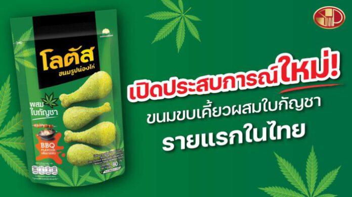สำหรับขนมรูปน่องไก่โลตัส ผสมใบกัญชา รสบาร์บีคิว จะเริ่มวางจำหน่ายที่ห้างโมเดิร์นเทรดและร้านสะดวกซื้อตั้งแต่ปลายเดือนธันวาคมนี้ ในราคาซองละ 30 บาท