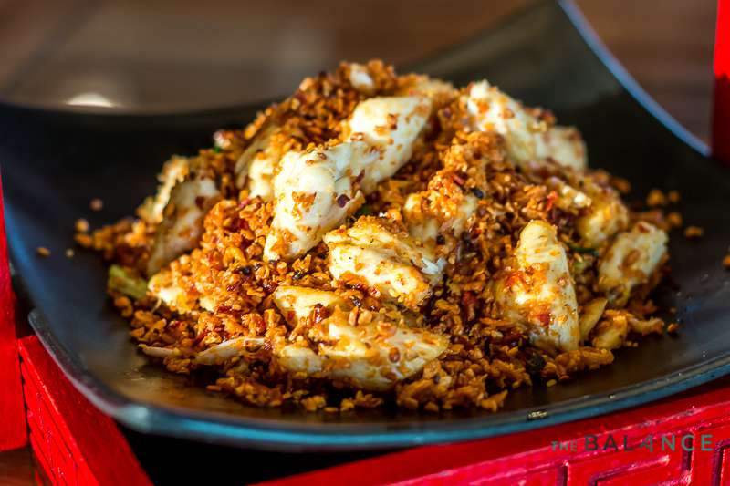 ปิดท้ายความอร่อยด้วยของหวานซิกเนเจอร์ที่มีชื่อเดียวกับร้านคือ “อำแดงไต้ฝุ่น” ขนมที่มีรูปเป็นแท่งสีเหลี่ยมสีขาวนวลแปลกตาและรสชาติที่ไม่เหมือนใคร หาได้เฉพาะที่ร้านนี้ เพราะทำจากเต้าหูโฮมเมดนำไปทอดมีความนุ่มความหนึบ คลุกเคล้าด้วยถั่วลิสง งา และเม็ดมะม่วงหอมพานต์ บดจนละเอียด หอมหวานมันอย่าบอกใคร
