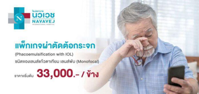 “โรงพยาบาลนวเวช” โรงพยาบาลย่านเกษตรนวมินทร์ รัชดา-รามอินทรา ที่มุ่งให้บริการทางการแพทย์ที่ดีและเข้าถึงง่าย พร้อมดูแลสุขภาพของทุกคนอย่างเข้าอกเข้าใจ ด้วยบริการทางการแพทย์ที่ครอบคลุมทุกช่วงวัย และทีมแพทย์เฉพาะทาง จัดแพ็กเกจ “ผ่าตัดต้อกระจก” สำหรับผู้สูงอายุหรือผู้ที่มีอาการเลนส์แก้วตาขุ่น มัว เป็นฝ้า บดบังการมองเห็น ทำให้คุณภาพชีวิตลดลง สามารถรักษาให้หายขาดได้ โดยการผ่าตัดเอาเลนส์แก้วตาที่ขุ่นออก แล้วเปลี่ยนใส่เลนส์แก้วตาเทียมเข้าไปแทน ด้วยการใช้เลนส์แก้วตาเทียมระยะเดียว แบบพับได้ (Monofocal IOL) ทำให้ผู้ป่วยมองระยะไกลได้ชัดขึ้น และมีความปลอดภัยสูง โดยแพ็กเกจราคาเริ่มต้น 33,000 – 42,000 บาท (ต่อข้าง) ตั้งแต่วันนี้ถึง 30 กันยายน 2565 สอบถามและนัดหมายล่วงหน้าได้ที่ ศูนย์ตา โทร. 0 2483 9999