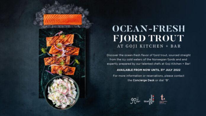 ฟยอร์ดเทราต์ จะเป็นหนึ่งในตัวเลือกอาหารของบุฟเฟ่ต์ที่ห้องอาหารโกจิ คิทเช่น + บาร์ จนถึงวันที่ 31 กรกฎาคม 2565 แขกทุกท่านจะได้ลิ้มลองความสดใหม่ของ “อัญมณีแห่งฟยอร์ดนอร์เวย์” ที่ส่งตรงมาจากท้องทะเล อาทิเช่น ฟยอร์ดเทราต์อบเกลือ ฟยอร์ดเทราต์เวลลิงตัน ชุดเมนูปลาแล่ ฟยอร์ดเทราต์อบซอสเนยมะนาว พายฟยอร์ดเทราต์รมควัน กราแตงฟยอร์ดเทราต์ พิซซ่าแป้งบางกรอบหน้าฟยอร์ดเทราต์รมควัน ซุปฟยอร์ดเทราต์รมควัน ซุปทะเลและฟยอร์ดเทราต์ และสตูว์ฟยอร์ดเทราต์พร้อมแครอทและมันฝรั่ง