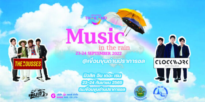 เตรียมเสื้อกันฝน พกร่มให้พร้อม แล้วมาสนุกด้วยกันกับงานเทศกาลดนตรี Music in the rain วันที่ 23 – 24 กันยายน 2565 ตั้งแต่เวลา 15.00 – 22.00 น. ณ เขื่อนขุนด่านปราการชล จังหวัดนครนายก