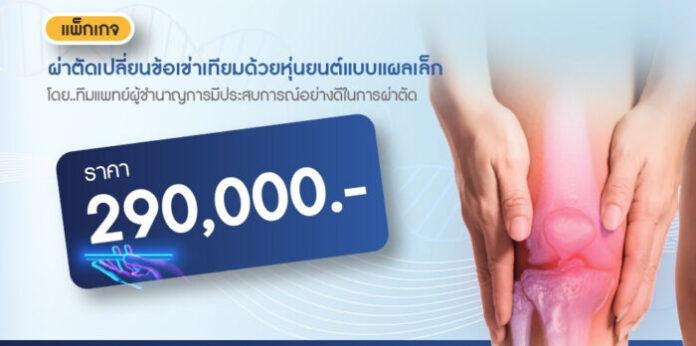 รพ.ธนบุรี บำรุงเมือง พร้อมที่จะดูแลทุกปัญหาข้อเข่า เปลี่ยนข้อเสื่อม ให้เป็นข้อดี เพราะโรคข้อเข่าเสื่อมเกิดการใช้งานข้อเข่า การทำกิจกรรม หรือกิจวัตรประจำวันที่มีแรงกดต่อข้อเข่าที่มากเกินไป จึงมอบ แพ็กเกจผ่าตัดข้อเข่าเสื่อมด้วยหุ่นยนต์แบบแผลเล็กที่จะทำให้เจ็บน้อย ฟื้นตัวเร็ว และสามารถกลับไปใช้ชีวิตได้อย่างปกติ โดย ทีมแพทย์ผู้ชำนาญการมีประสบการณ์อย่างดีในการผ่าตัด ราคา 290,000 บาท ราคาดังกล่าวรวมค่าแพทย์ผ่าตัดและแพทย์วิสัญญี ค่าห้องผ่าตัด ห้องพัก Standard 4 คืน 5 วัน ค่าเวชภัณฑ์ ค่ายาที่ใช้ในการผ่าตัด ค่ากายภาพระหว่างพักฟื้นที่ รพ. ในกรณีมีการรักษานอกเหนือจากแพ็กเกจ ค่ารักษาพยาบาลในส่วนของโรคประจำตัวหรือภาวะแทรกซ้อน ทางโรงพยาบาลจะคิดค่าใช้จ่ายตามจริง การผ่าตัดจะขึ้นกับดุลยพินิจของแพทย์และเงื่อนไขเป็นไปตามที่ รพ. กำหนด สามารถรับบริการได้ตั้งแต่ 14 กันยายน – 31 ธันวาคม 2565