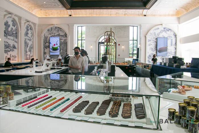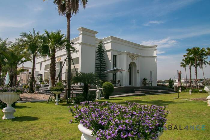 โซนนอกอาคารเป็นพื้นที่สวนและโต๊ะเก้าอี้ภายใต้บรรยากาศโปร่งโล่งสบายตา ด้านหลังร้านเป็นส่วนของครัวกลางขนาดใหญ่ ที่สามารถรองรับการขยายสาขาในอนาคต รวมทั้งการออกแบบและรับจ้างผลิตขนมเกรดพรีเมียมให้กับร้านต่าง ๆ