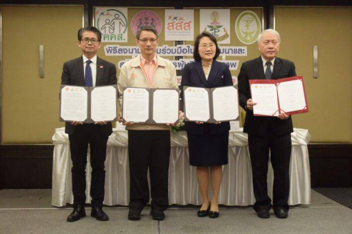 พิธีลงนามความร่วมมือในการพัฒนาและสนับสนุนองค์กรผู้บริโภคคุณภาพ ระหว่าง 4 องค์กร ได้แก่ สำนักงานกองทุนสนับสนุนการสร้างเสริมสุขภาพ (สสส.) สำนักงานคณะกรรมการคุ้มครองผู้บริโภค(สคบ.) คณะเภสัชศาสตร์ จุฬาลงกรณ์มหาวิทยาลัย และมูลนิธิวิทยาลัยการคุ้มครองผู้บริโภคด้านยาและสุขภาพ(มวคบ.)