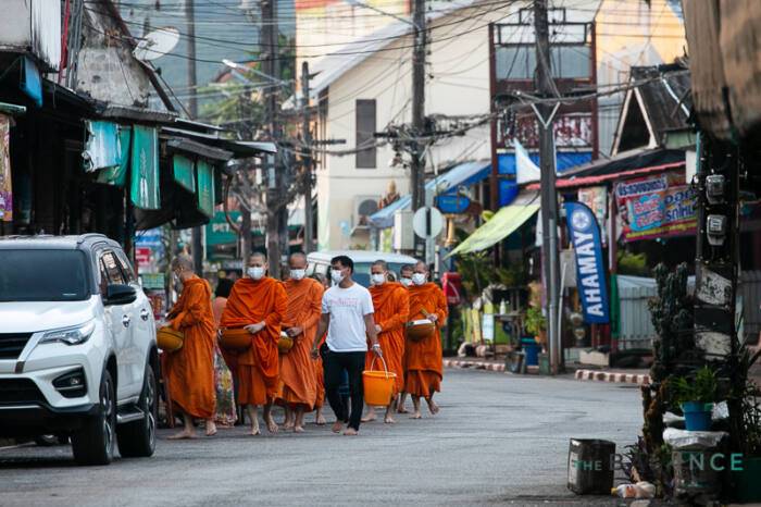 หากมาเยือน อ.ทองผาภูมิ ต้องไม่ควรพลาดการไปเดินเล่นตลาดเช้า ซึ่งอยู่ไม่ไกลกับลานชมวิวริมแม่น้ำแควน้อย ที่ตั้งของ “สะพานแขวนหลวงปู่สาย” ยามเช้าบรรดาพระสงฆ์จากวัดท่าขนุน จะเดินออกรับบิณฑบาตและผ่านบริเวณสะพานทั้งขาไปและขากลับ  หากมาในช่วงหน้าหนาวจะเห็นหมอกยามเช้าปกคลุมสวยงาม นักท่องเที่ยวสามารถร่วมทำบุญตักบาตร ทั้งบริเวณหมู่บ้าน ตลาด และบนสะพานแห่งนี้