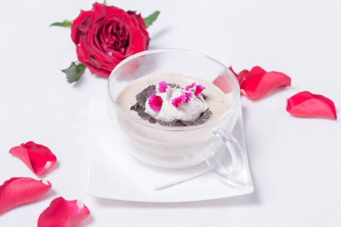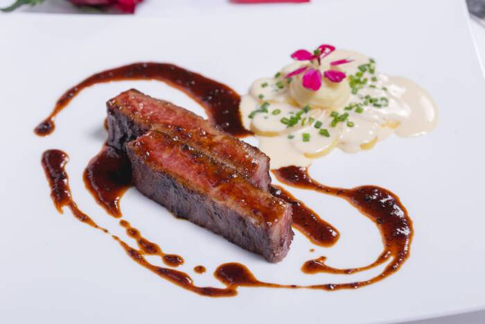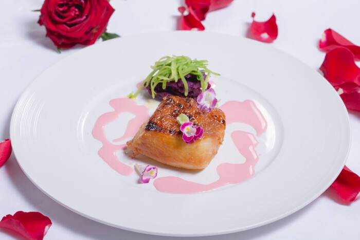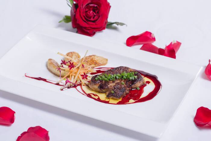 สำหรับดินเนอร์สุดหรูเมนูสุดหรู 5 คอร์ส อาทิ อามูสบุช, ตับห่านย่างเสิร์ฟพร้อมซอสราสเบอร์รี่และผักร็อคเก็ต, ซุปเห็ดทรัฟเฟิลดำ, ปลาหิมะหมักมิโซะเสิร์ฟพร้อมมันม่วงบดและถั่วลันเตา หรือ เนื้อซี่โครงวากิว A4 นำเข้าจากญี่ปุ่น เสิร์ฟพร้อมกราแตงมันฝรั่ง, เชอร์เบทแชมเปญ และปิดท้ายด้วยของหวานแสนอร่อย เค้กช็อกโกแลต เสิร์ฟพร้อมซอสราสเบอร์รี่และราสเบอร์รี่สด