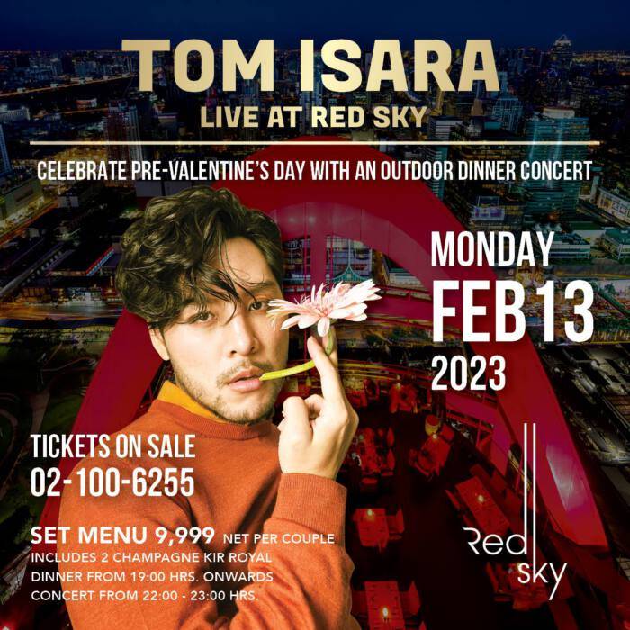 พรีวาเลนไทน์ วันจันทร์ที่ 13 กุมภาพันธ์ 2566นี้ เราพร้อมให้คุณชุ่มฉ่ำหัวใจไปกับบรรยากาศสุดพิเศษพร้อมกับมื้ออาหารดินเนอร์สุดหรู ชมวิวทิวทัศน์พระอาทิตย์ตก ใจกลางมหานครสุดตระการตาแบบ 360 องศา กับเซ็ตเมนูสุดหรู 5 คอร์ส สำหรับ 2 ท่าน ราคาเพียง 9,999 บาทถ้วน ต่อคู่ และพิเศษแบบสุดขีดในค่ำคืนด้วยเสียงร้องที่ทรงพลัง อ่อนหวาน พร้อมเพลงฮิตติดหูมากมาย กับศิลปินนักร้องชื่อดัง ทอม อิศรา กิจนิตย์ชีว์ ที่จะสร้างความสุขให้กับคุณในบรรยากาศที่อบอุ่นสุดแสนโรแมนติก
