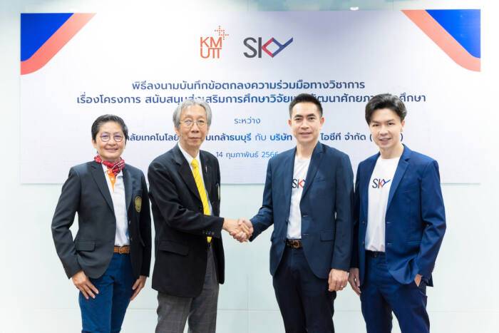 สิทธิเดช มัยลาภ ประธานเจ้าหน้าที่บริหาร บริษัท สกาย ไอซีที จำกัด (มหาชน) หรือ SKY เปิดเผยว่า บริษัทได้ลงนามบันทึกความเข้าใจ (MOU) ร่วมกับมหาวิทยาลัยเทคโนโลยีพระจอมเกล้าธนบุรี (มจธ.) หรือ KMUTT ในการร่วมกันพัฒนานักศึกษาสู่การเป็น Tech Talent ที่ผ่านการปฏิบัติงานจริง และส่งเสริมให้เกิดการจ้างงานบัณฑิตหลังจบการศึกษา ตลอดจนสนับสนุนทุนวิจัยและพัฒนางานบริการทางวิชาการ เพื่อพัฒนาองค์ความรู้ต่าง ๆ ที่จะช่วยขับเคลื่อนประเทศต่อไปในอนาคต ตามปณิธานของสกาย ไอซีทีด้าน Tech Talent Transformation ที่มุ่งสร้าง Tech Talent สายเลือดใหม่เข้ามาเติมเต็ม Tech Ecosystem ของประเทศไทยให้แข็งแกร่งมาอย่างต่อเนื่อง