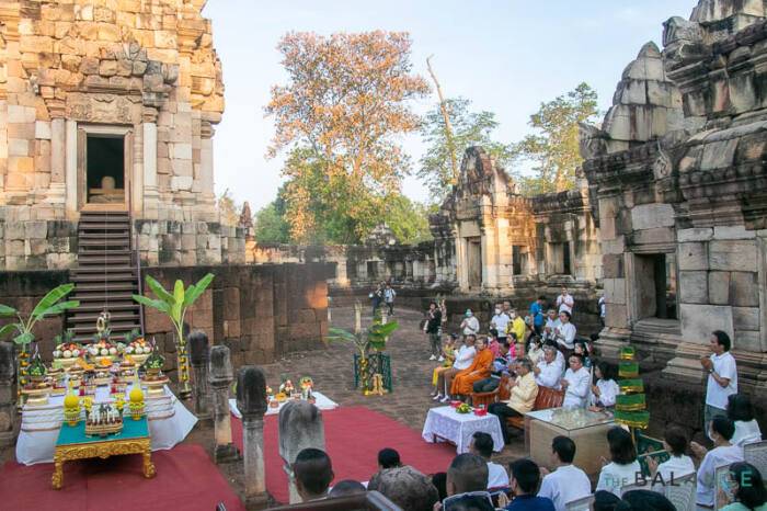 โดยเช้าวันที่ 22 มีนาคม ซึ่งเป็นวันที่เกิดปรากฏการณ์พระอาทิตย์ส่องลอดซุ้มประตูปราสาทขอมตรงทุกช่อง เป็นการทำพิธีสะเดาะเคราะห์สืบชะตา และรำบวงสรวงรวมทั้งประชาชนนับร้อยที่มาร่วมชมแสงแรกผ่านช่องประตูปราสาท และร่วมพิธีบวงสรวงทางศาสนา
