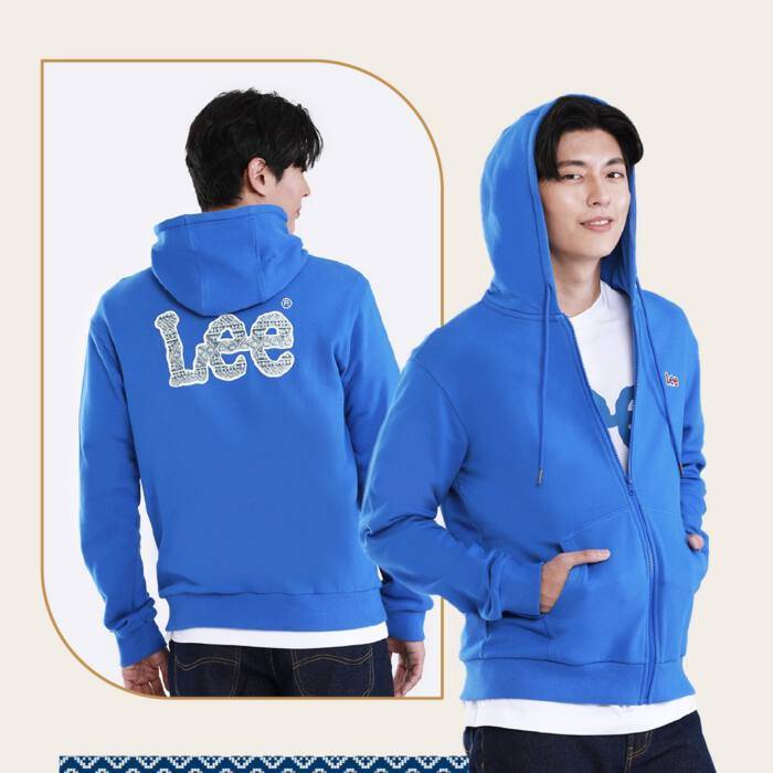 อีกหนึ่งเอกลักษณ์ไทยที่ไม่เอ่ยถึงไม่ได้ “ผ้าไทย” อันมีลวดลายการทอเป็นอัตลักษณ์ในแต่ละท้องถิ่นที่โดดเด่นสวยงามแตกต่างกัน Lee ในฐานะผู้นำด้านแฟชั่นร่วมสมัยและอยู่ในกระแสเสมอมา จึงไม่พลาดที่จะหยิบยกลวดลายของผ้าไทยมาใส่ในโลโก้ Lee ที่เป็นไอคอนประจำแบรนด์ เพื่อร่วมเผยแพร่ความสวยงามของผ้าไทยโดยใช้เทคนิคการปักลวดลายลงไป ทำให้เหมือนว่าได้สัมผัสผ้านั้นจริงๆ รวมไปถึงลาย “แผนที่ประเทศไทย” ที่ปรากฏลายกราฟฟิกผ้าไทยในแต่ละภาคมารวมไว้ในแผนที่ประเทศไทย