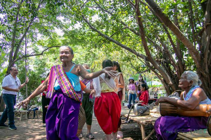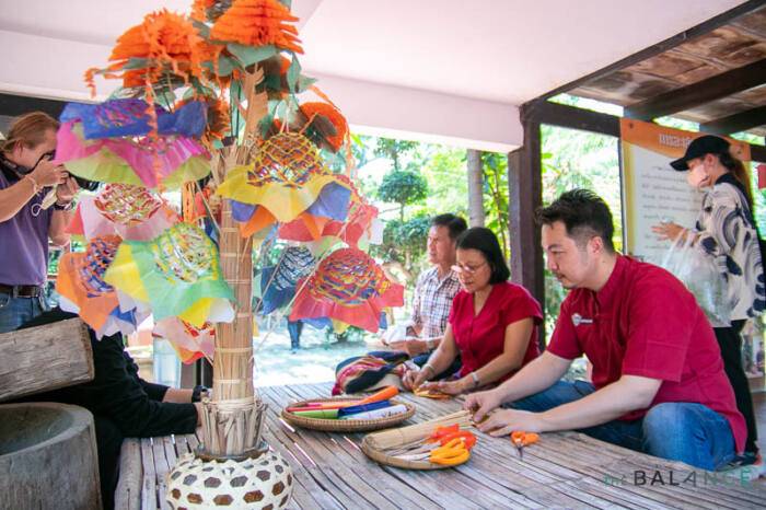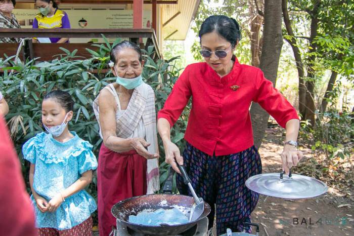 จากนั้นก็ไปลองทำพวงมะโหด ก่อนจะไปอิ่มอร่อยกับชุดอาหารถิ่นไทยเบิ้งในมื้อเที่ยง ที่จัดเต็มแบบจุก ๆ เรียงรายมาทั้งต้ม แกง ทอด น้ำพริกผัดต้ม และขาดไม่ได้กับ “เครื่องดำ” ซึ่งมีลักษณะคล้ายน้ำพริกคั่วแห้ง ๆ ที่มีส่วนผสมของกำจัด แม้จะเป็นรสชาติที่ไม่คุ้นเคยนัก แต่นับเป็นการเปิดประสบการณ์อาหารถิ่นอันน่าประทับใจ