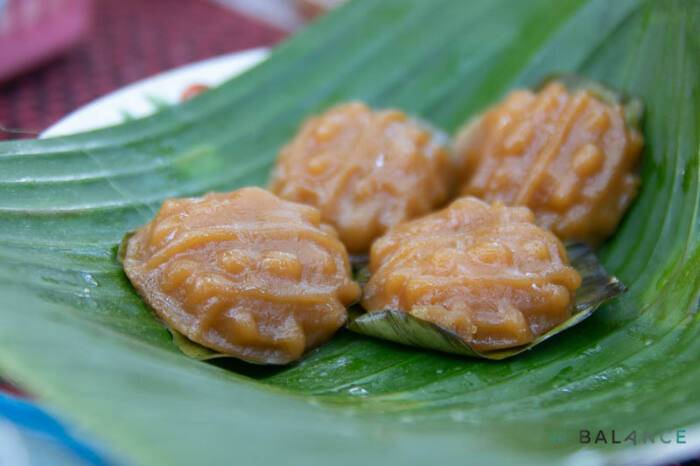 ขนมเต่าที่มีรุปร่างคล้ายเต่า ตัวแป้งทำจากแป้งข้าวเหนียว น้ำกะทิ และน้ำตาลปี๊บ ส่วนไส้ทำจากถั่วซีกแช่น้ำให้นุ่มแล้วนำไปนึ่งให้สุก มานำมาผัดกับกะทิ วิธีการทำก็น่ารัก โดยจะใช้แป้งที่เหนียวได้ที่ปั้นเป็นก้อนกลม ๆ เล็ก ๆ ขนาดลูกปิงปอง จากนั้นก็นำใส่พิมพ์ที่ทำจากไม้ ใส่ไส้ลงไป แล้วปิดตัวจนรอบ จากนั้นก็นำไปนึ่งจนสุก ขนมเต่าจะมีความเหนียวนุ่ม หอมน้ำตาลและกะทิ รสชาติไม่หวานมาก รับประทานได้เพลิน ๆ ถูกอกถูกใจทั้งเด็กและผู้ใหญ่