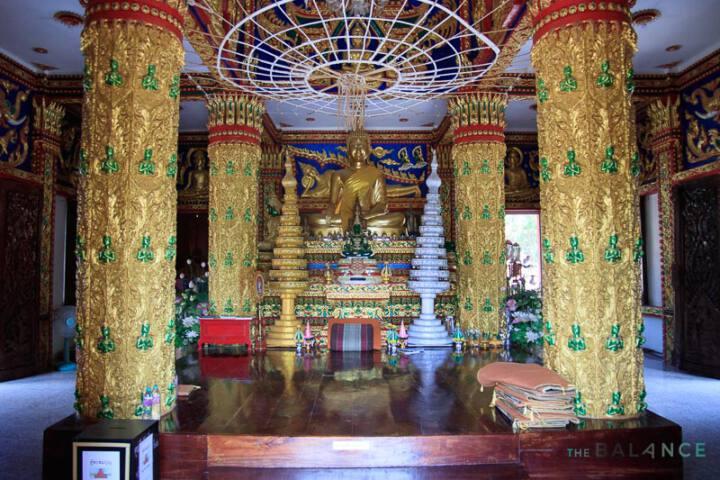 ภายในวัดมีลักษณะที่โดดเด่นต่าง ๆ อาทิ อุโบสถจัตุรมุข เป็นที่ประดิษฐาน “พระใหญ่พรชัยมงคล ศากยมุนีโลกนาท” ขนาดใหญ่ โดยมีท้าวจตุโลกบาล ประจำทั้ง 4 ทิศ และล้อมรอบด้วยกำแพงแก้วพญานาค ตามความเชื่อที่ว่าพญานาคจะคอยปกป้องพระพุทธศาสนา