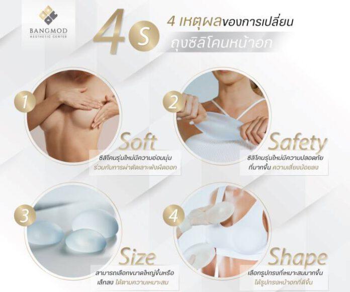 นพ.ธนัญชัย ยังให้นิยามเหตุผลของการที่คนส่วนใหญ่เลือกที่จะมาศัลยกรรมแก้ไขหน้าอกที่ศูนย์ศัลยกรรมความงามโรงพยาบาลบางมดอย่างน่าสนใจโดยแบ่งเป็น 4 เหตุผล (4S)