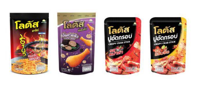 เป็นการต่อยอดจาก “โลตัสหนังไก่กรอบ” ที่ได้รับความนิยมเป็นอย่างมากในกลุ่มนักศึกษาและวัยทำงาน ด้วยช่องว่างทางการตลาดที่มี ทางบริษัทจึงได้พัฒนา “โลตัสปูอัดกรอบ” มาใน 2 รสชาติ ได้แก่ “รสหม่าล่า” และ “รสแซ่บซี้ด” ขนาด 30 กรัม จำหน่ายในราคาซองละ 30 บาท ซึ่งนับเป็นครั้งแรกของการนำปูอัดกรอบมาทำเป็นขนมขบเคี้ยว โดยมีกลุ่มเป้าหมายที่ชัดเจน นั่นคือกลุ่มนักศึกษาและวัยทำงาน โดย SNNP มีแผนในการทำตลาดและสร้างการรับสู่กับกลุ่มผู้บริโภค ด้วยการจัดทำโฆษณาออนไลน์และใช้ Influencer รวมไปถึงการลงรีวิวผ่าน Facebook page review การจัดทำสื่อในร้านค้า และการจัดโปรโมชันพิเศษ เพื่อกระตุ้นให้ผู้บริโภคสนใจทดลองซื้อไปรับประทานอีกด้วย จำหน่ายสุดเอ็กซ์คลูซีฟเฉพาะที่ร้านเซเว่น ฯ