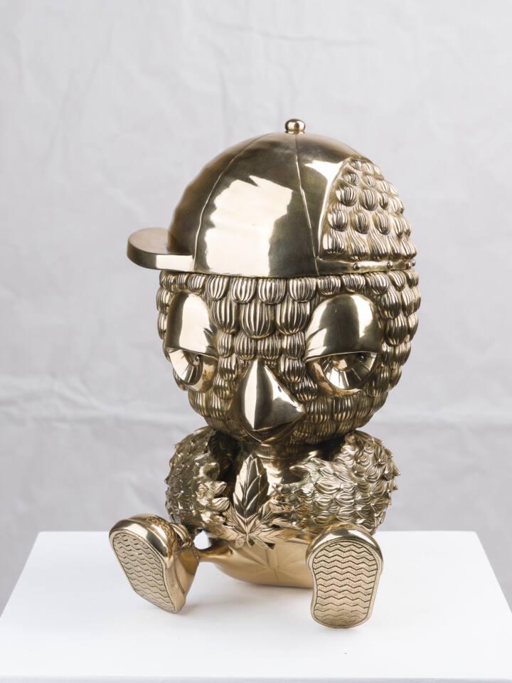 “ศิลปินสตรีทอาร์ทอันดับต้น ๆ ของไทย อเล็กซ์ เฟซเก่งเรื่องการใช้สเปรย์พ่นสี แต่งานที่นำออกประมูลครั้งนี้แสดงให้เห็นว่า เขายังมีความสามารถในการใช้พู่กันวาดสีลงบนผืนผ้าใบได้สวยงาม ภาพนี้ได้รับแรงบันดาลใจมาจากงานของโมเนต์ ศาสดาสายอิมเพรสชั่นนิสม์ เขาวาดภาพบึงบัวแล้วมีเด็กสามตา “มาร์ดี” อยู่กลาง ภาพนี้เคยผ่านการประมูลในต่างประเทศและจัดแสดงในพิพิธภัณฑ์ศิลปะต่างประเทศมาแล้ว”