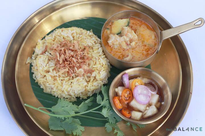 อีกเมนูหลักที่มีความเข้มครบเครื่อง คือ “ข้าวบุหรี่ กับ แกงบุมใบ” เสิร์ฟมาพร้อมกับอาจาดไหลบัว ตัวข้าวประกอบด้วยเครื่องเทศมากมาย เช่น หญ้าฝรั่น ลูกกระวานเทศ กานพลู อบเชย เนยฝรั่ง ลูกผักชี พริกไทย ยี่หร่า ฯลฯ กินคู่กับแกงบุมใบเป็นแกงโบราณของไทย ที่มีลักษณะคล้ายแกงอินเดีย นิยมแกงกับเนื้อวัว ใส่เครื่องเทศหลายชนิด บันทึกเกี่ยวกับแกงชนิดนี้ที่เก่าที่สุด อยู่ในสมัยรัชกาลที่ 5 รสชาติเปรี้ยวนำหวานตามเค็ม กินคู่กับข้าวบุหรี่ ตำรับเครื่องต้นสมัยพระพุทธเจ้าหลวง ตัดรสด้วยอาจาดไหลบัว เพิ่มความสดชื่นด้วย “ซุปลูกปู” เมนูจากทะเลเมืองเพชร