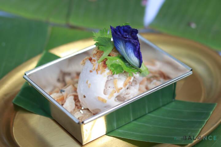 ปิดท้ายที่ “ไอศกรีมหม้อแกง” การผสมผสานขนมหวานเมืองเพชรออกมาในรูปแบบไอศกรีม รสชาติหอมละมุน เสิร์ฟคู่กับทองม้วนกรอบ เข้ากันได้ดี