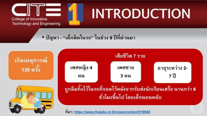 ผศ.อรดี พฤติศรัณยนนท์ รองคณบดีวิทยาลัยนวัตกรรมด้านเทคโนโลยีและวิศวกรรมศาสตร์ (CITE) และอาจารย์ประจำสาขาวิชาวิศวกรรมหุ่นยนต์และระบบอัตโนมัติ มหาวิทยาลัยธุรกิจบัณฑิตย์ (DPU) เปิดเผยว่าในทุก ๆ ปี จะเห็นข่าวการเสียชีวิตของเด็กจากการติดอยู่ในรถ ไม่ว่าจะเป็นรถตู้โรงเรียน หรือรถยนต์ส่วนตัว โดยสถิติเด็กติดในรถรับ-ส่งนักเรียน ในช่วง 9 ปีที่ผ่านมา พบว่าเกิดเหตุการณ์ 130 ครั้ง มีเด็กเสียชีวิต 7 ราย เป็นเพศหญิง 4 ราย และเพศชาย 3 ราย มีอายุระหว่าง 2-7 ปี ซึ่งถูกลืมทิ้งไว้ในรถที่จอดไว้หลังจากรับส่งนักเรียนแล้วเสร็จ นานกว่า 6 ชั่วโมงขึ้นไป โดยเด็กอาจนอนหลับอยู่ในรถ