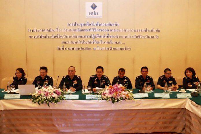 ดังนั้น เพื่อให้การกำกับดูแลและส่งเสริมให้กระบวนการขายผลิตภัณฑ์ประกันภัยเป็นไปอย่าง มีประสิทธิภาพยิ่งขึ้น และสอดคล้องกับพฤติกรรมของผู้บริโภคในยุคปัจจุบัน สำนักงาน คปภ. จึงจัดเวทีการประชุมเพื่อรับฟังความคิดเห็นต่อหลักการปรับปรุงร่างประกาศ คปภ. เรื่อง กำหนดหลักเกณฑ์ วิธีการออก การเสนอขายกรมธรรม์ประกันภัยของบริษัทประกันชีวิต/วินาศภัย และการปฏิบัติหน้าที่ของตัวแทนประกันชีวิต/วินาศภัย และนายหน้าประกันชีวิต/วินาศภัย พ.ศ….เมื่อวันที่ 9 เมษายน 2561 ณ โรงแรม ดิเอมเมอรัลด์ รัชดาภิเษก กรุงเทพฯ โดยมีผู้เข้าร่วมประชุมรับฟังความคิดเห็นกว่า 170 คน จาก 5 สมาคม ได้แก่ สมาคมประกันชีวิตไทย สมาคมประกันวินาศภัยไทย สมาคมนายหน้าประกันภัยไทย สมาคมตัวแทนประกันชีวิตและที่ปรึกษาทางการเงิน และสมาคมธนาคารไทย นอกจากนี้ ยังมีผู้แทนจากธนาคารแห่งประเทศไทย(ธปท.) และสำนักงานคณะกรรมการกำกับหลักทรัพย์และตลาดหลักทรัพย์ (ก.ล.ต.) และภาคประชาชน วัตถุประสงค์ของการรับฟังความคิดเห็นครั้งนี้ เพื่อให้กระบวนการควบคุมการเสนอขายผลิตภัณฑ์ประกันภัยผ่านช่องทางเสนอขายทุกช่องทางที่มีคุณภาพชัดเจนและลดการใช้ดุลยพินิจในการกำกับดูแลของหน่วยงานกำกับดูแล และเป็นมาตรฐานสากล เนื่องจากปลายปี 2561นี้ สำนักงาน คปภ. จะเข้ารับการประเมินการกำกับดูแลภาคการเงินของประเทศไทย (Financial Sector Assessment Program: FSAP) ซึ่งเป็นมาตรฐานสากล (Insurance Core Principles: ICPs) ของสมาคมผู้กำกับดูแลธุรกิจประกันภัยนานาชาติ (International Association of Insurance Supervisors: IAIS) โดยมาตรฐานสากลนี้จะประเมินประสิทธิภาพของหน่วยงานกำกับดูแลธุรกิจประกันภัยของประเทศนั้นๆ ว่าอยู่ในระดับใดเมื่อเทียบกับมาตรฐานสากล