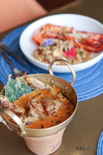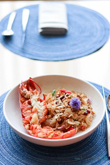 วันนี้ยังได้ลิ้มลองสองเมนูใหม่ “ยำส้มโอล็อบสเตอร์” ยำส้มโอเป็นเมนูที่มีอยู่ในโรงแรมทั่วไป แต่ยำส้มโอของอินดิโก้ ไม่เหมือนที่ไหน ไม่ใช่เพราะเสิร์ฟมาพร้อมล็อบสเตอร์ แต่ใช้น้ำยำแบบโบราณที่ผสมกะทิลงไปด้วย ทำให้กลมกล่อม ไม่เปรี้ยวแหลม หรือเค็มแหลมจนเกินไป เติมความสดชื่นและรสสัมผัสด้วยทับทิม และถั่วลิสงบด โรยความหอมกรุบกรอบด้วยหอมทอดและกระเทียมทอด จานนี้รสชาติถึงใจไทยแท้