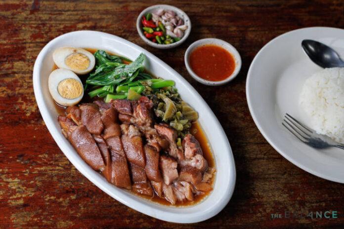 ได้ลองแล้วถึงต้องย้อนถามตัวเองว่า “นานแค่ไหนแล้วที่ไม่ได้กินขาหมูอร่อย ๆ แบบนี้” ขาหมูเน้น ๆ ทั้งเนื้อ หนัง หรือ คากิ เจอกับน้ำจิ้มสูตรเข้มข้นลงตัว ตัดกับรสชาติของขาหมูได้อย่างออกรส แกล้มพริกขี้หนูสดกับกระเทียมที่จัดเต็มแบบไม่หวงของ แถมยังใช้ข้าวสวยที่นุ่มกำลังดี ช่างเป็นช่วงเวลาสุดฟินตั้งแต่คำแรกจนคำสุดท้าย ราคาก็ดีต่อใจ เริ่มต้นสบาย ๆ ที่ 60 บาท