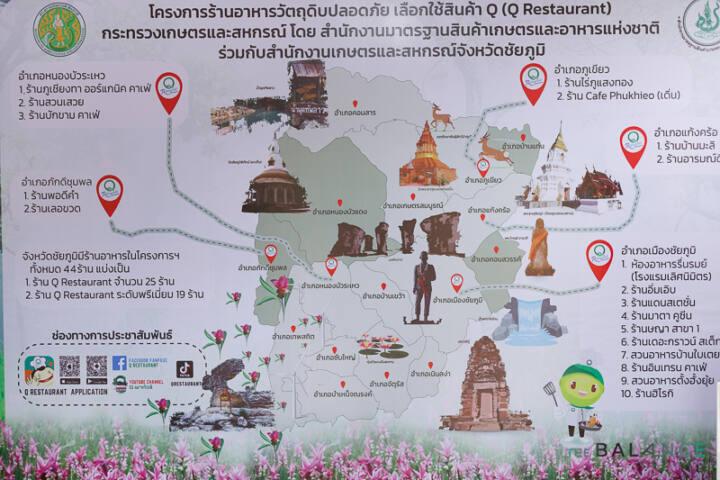 ห้ามพลาดอย่างยิ่ง กับการชิมอาหารถิ่นและของดีชัยภูมิ ซึ่งปีนี้มีร้านค้าบางส่วนจาก “โครงการร้านอาหารวัตถุดิบปลอดภัย” หรือ Q Restaurant ในจังหวัดชัยภูมิ มาร่วมออกบูธด้วย เช่น ร้านสวนเสวย ร้านอิ่มเอิบ ร้านบักขามคาเฟ่ ร้านพอดีคำ เป็นต้น
