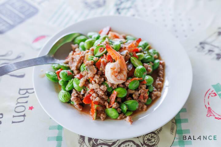 หน้าฝนเป็นช่วงที่สะตอเทพสถิตกำลังออกช่อเต็มต้น จึงมีเมนูผัดสะตอเป็นไฮไลต์ของทางร้าน ตามมาด้วยเมนูปลาต่าง ๆ รวมทั้งยำผักกูด และขาดไม่ได้กับ “ส้มตำ” ที่สั่งมาแซ่บกันแทบทุกมื้อ