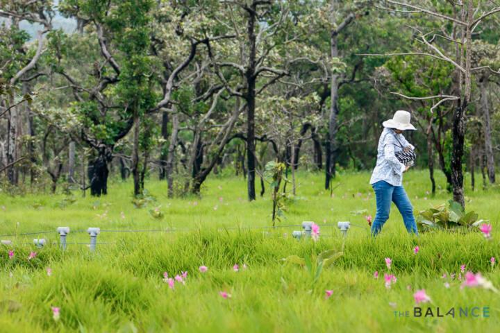 ไปชมสวนที่เต็มไปด้วยรายละเอียดของงานแลนด์สเคป จุดเริ่มต้นจากการปลูกพืชผักปลอดภัย ภายใต้มาตรฐาน GAP ซึ่งร้านอาหารหลาย ๆ ร้านใน อ.เทพสถิตก็ใช้ผลผลิตจากที่นี่