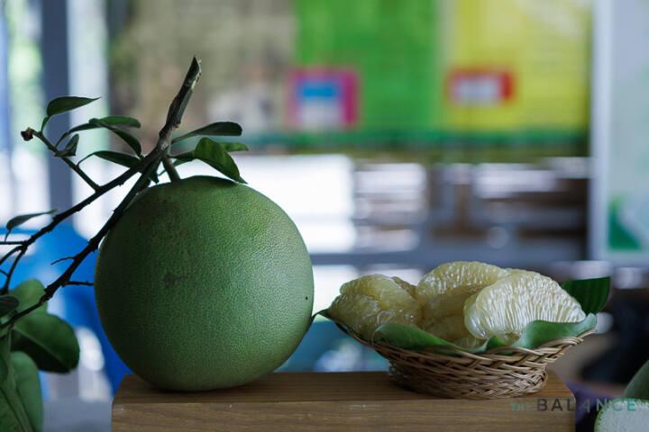 ส้มโอขาวใหญ่ของจังหวัดสมุทรสงคราม มีรสชาติหวานอมเปรี้ยวเล็กน้อย เนื้อแห้งนุ่มแน่น สินค้าที่ได้รับรองเป็นสินค้า GI หรือ  สิ่งบ่งชี้ทางภูมิศาสตร์ (Geographical Indication) มาแล้วจะได้เรียนรู้การปลูกส้มโอ เดินชมสวนส้มโอ การเลือกส้มโอ การปอกส้มโอ รวมทั้งการแปรรูปส้มโอ ซึ่งปัจจุบันเกือบจะกลายเป็น Zero Waste เพราะนำเปลือกส้มโอมาทำเป็นขนมได้ด้วย