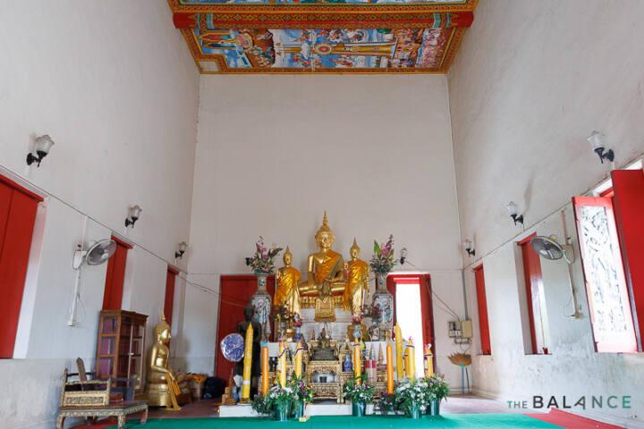 ไฮไลต์ที่ควรค่าแก่การเข้าชมและสักการะคือพระพุทธรูปในอุโบสถปางมารวิชัย และพระประธานในวิหาร ซึ่งเป็นพระศิลาแลงปางมารวิชัย  รวมทั้งรูปแกะสลักไม้สักที่หน้าบันเป็นรูปพระนารายณ์ทรงครุฑ เป็นของเก่าจากอุโบสถหลังเดิม