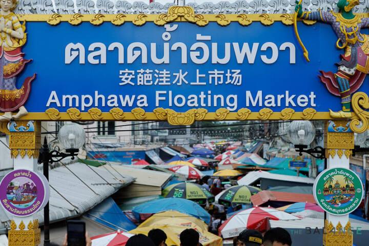 “อัมพวา” เป็นชุมชนริมน้ำแม่กลอง ซึ่งจะแยกย่อยเป็นลำคลองสายเล็กสายน้อยอีกหลายสาขา โดยมีจุดรวมความสุขใจอยู่ที่ตลาดน้ำอัมพวา ซึ่งจะบรรดาพ่อค้าแม่ขาย ทั้งร้านรวงริมตลิ่ง และชาวเรือ จะมารวมตัวกันในทุกวันเสาร์-อาทิตย์และวันหยุดนักขัตฤกษ์