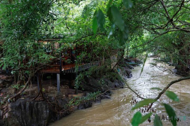 ก่อนจะไต่เขาเข้าสู่อ้อมกอดของธรรมชาติ แวะเติมพลังกันที่ “ร้านเพาะรัก@บ้านไร่อาจารย์หนวด”เป็นร้านอาหารใน อ.ทองผาภูมิ ที่โดดเด่นทั้งรสชาติและบรรยากาศริมลำธาร นอกจากจะเติมพลังคนแล้ว ใครที่จะขับรถขึ้นไปที่บ้านอีต่อง ควรเติมพลังของยานพาหนะไปให้พร้อมด้วยนะ