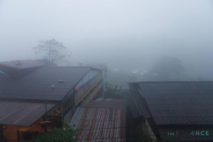 ความน่ารักของที่พักแห่งนี้คือส่วนของดาดฟ้า แม้จะไม่สูงมาก แต่สามารถมองเห็นความเป็นไปในตัวตลาดได้อย่างเต็มตา และมันดีมากที่ช่วงนี้น้องหมอกเธอครอบครองอาณาจักรเอาไว้ ภาพของหมู่บ้านในมุมสูงจึงดีต่อใจสุด ๆ ยืนชมได้ไม่นาน ฝนก็เทลงมาอีกแล้ว…