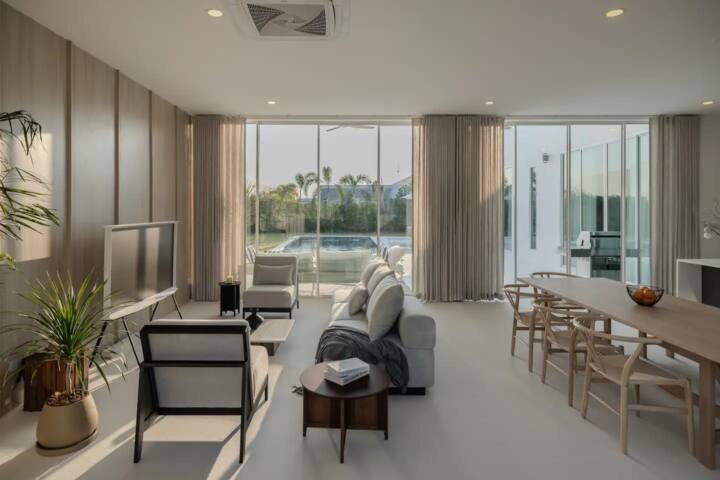 ยกระดับประสบการณ์การเล่นกอล์ฟที่วิลล่าสไตล์ปาล์มสปริงส์ในเขาเต่า หัวหิน พูลวิลล่าส่วนตัวแห่งนี้มี 4 ห้องนอน 4 ห้องน้ำ พร้อมกับพื้นที่ใช้สอยเปิดโล่งกว้างขวางและสระว่ายน้ำ ตั้งอยู่ใกล้สนามกอล์ฟ เหมาะอย่างยิ่งสำหรับผู้ที่รักการออกรอบและต้องการการพักผ่อนสุดพิเศษ