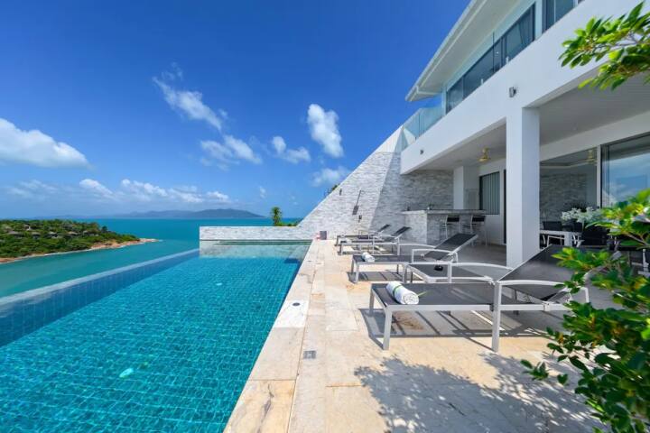 ทรอปิคอลวิลล่า พร้อมวิวมหาสมุทรสุดตระการตา และวิวพระอาทิตย์ตกที่สวยงาม ภายในมีพื้นที่กว้างขวางและสระว่ายน้ำอินฟินิตี้แบบส่วนตัวซึ่งอยู่ห่างจากชายหาดยอดนิยมเพียงไม่กี่ก้าว