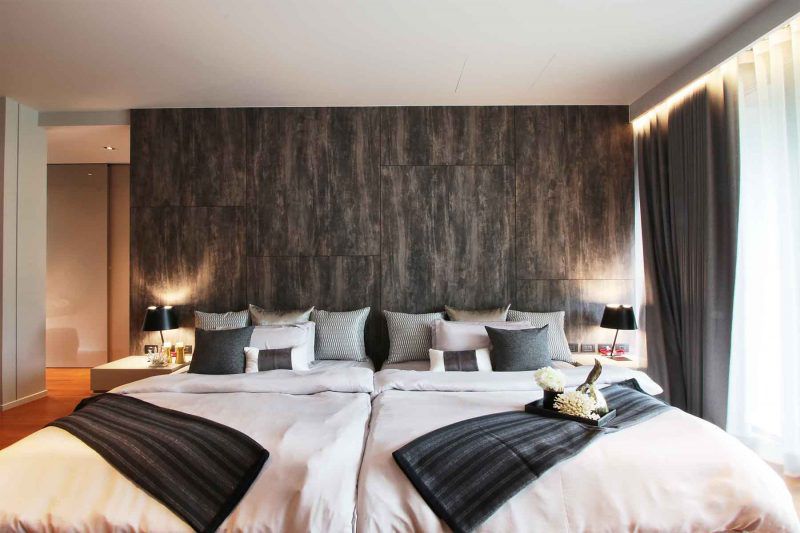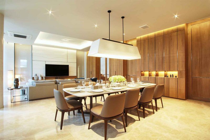 เจ้าของบ้านชอบไม้สักมาก นักออกแบบจึงนำไม้สักมาใช้ในหลายๆพื้นที่ของบ้าน สร้างเป็น contrast ที่น่าสนใจคู่กับวัสดุที่แตกต่างกันอย่างหิน กระจก และ rose gold stainless steel ให้ความรู้สึกถึงธรรมชาติแต่ยังคงความเป็น Modern Luxury อยู่อย่างครบถ้วน