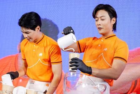 ในงาน ‘Punthai Thai Coffee to The World’ ครั้งนี้ นอกจากจะได้ดื่มด่ำกับกาแฟไทยในแก้วลิมิเต็ดอิดิชัน ที่เปิดตัวในงานครั้งแรกแล้ว ยังได้ชื่นชมผลงานศิลปะของ คุณสุรชัย พุฒิกุลางกูร ที่เนรมิตแก้วไทยริกาโนสุดอลังการสูงกว่า 3 เมตร มาให้ได้ชมทุกรายละเอียดกันแบบเต็มๆ ตา ประทับใจกับกิจกรรมสุดเอ็กซ์คลูซีฟที่พันธุ์ไทยตั้งใจมอบเป็นของขวัญให้ชาวด้อมใจฟูได้ใกล้ชิดกับ ‘คัลแลน-พี่จอง’ พรีเซนเตอร์คู่แรกของพันธุ์ไทย พร้อมเสิร์ฟเมนูในตำนาน ‘Creative Thai Taste Selected by คัลแลน พี่จอง’ ที่สองหนุ่มนำมาให้ชิมกันเฉพาะงานนี้เท่านั้น ไม่ว่าจะเป็น โพดชาเขียว ฝอยทอง Thai Tea มะม่วงเบาปั่น และอเมริกาโน โซดา สตรอว์เบอร์เร่อ โดยสองหนุ่มอปป้ายังรับหน้าที่บาริสต้าเสิร์ฟไทยริกาโนให้กับ Lucky Fan ผู้โชคดีในงานด้วยตัวเองอีกด้วย