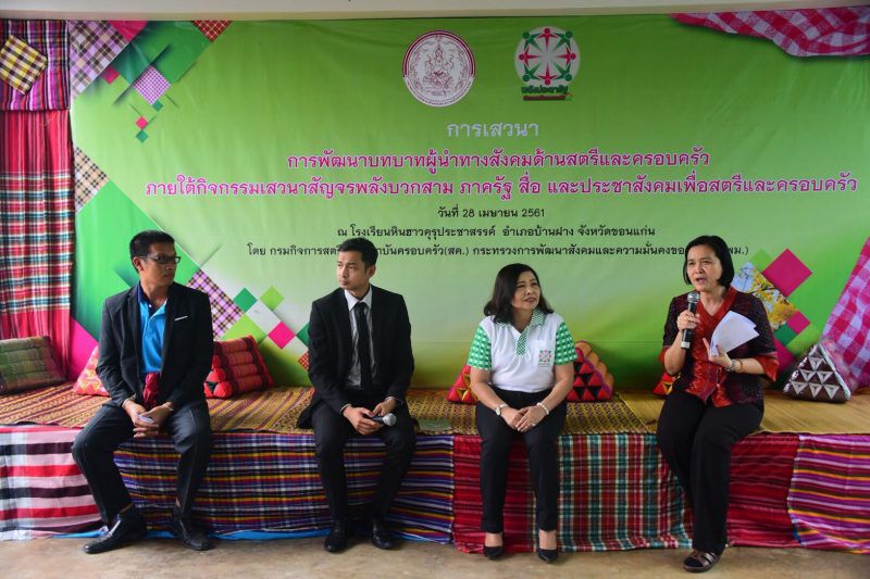 เรื่องราวเหล่านี้ เป็นอีกภารกิจหนึ่งของ  กรมกิจการสตรีและสถาบันครอบครัว (สค.) กระทรวงการพัฒนาสังคมและความมั่นคงของมนุษย์ (พม.) โดยไม่นานมานี้ ได้ลงพื้นที่ ณ โรงเรียนหินฮาวคุรุประชาสรรค์ บ้านหินฮาว ตำบลโนนฆ้อง อำเภอบ้านฝาง จังหวัดขอนแก่น และมีการเสวนา การพัฒนาบทบาทผู้นำทางสังคมด้านสตรีและครอบครัว โดยมีวิทยากรร่วมเสวนาทั้งจากภาครัฐ ภาคเอกชน และภาคประชาสังคม ร่วมเสวนา ประกอบด้วย นางพัชรี อาระยะกุล รองอธิบดีกรมกิจการสตรีและสถาบันครอบครัว นายศุภชัย คำภู ประธานเครือข่ายกลุ่มอาชีพสตรีบ้านหินฮาว นายอัตรา ขุนทองจันทร์ อัยการจังหวัดผู้ช่วย สำนักงานอัยการจังหวัดคดีศาลแขวงภูเก็ต นายสราวุธ ศรีพัก นักพัฒนาชุมชนชำนาญการ ในฐานะเลขานุการศูนย์พัฒนาครอบครัวในชุมชนห้วยม่วง (ศพค.ห้วยม่วง) อ.ภูผาม่าน จ.ขอนแก่น และได้รับเกียรติจาก รศ.ดร.ดุษฎี อายุวัฒน์ เป็นผู้ดำเนินรายการและวิทยากรร่วมเสวนา เกี่ยวกับการดูแลช่วยเหลือหญิงไทยในต่างประเทศ แลกเปลี่ยนประสบการณ์ /สะท้อนปัญหา ผู้ได้รับผลกระทบจากการเดินทางไปต่างประเทศ