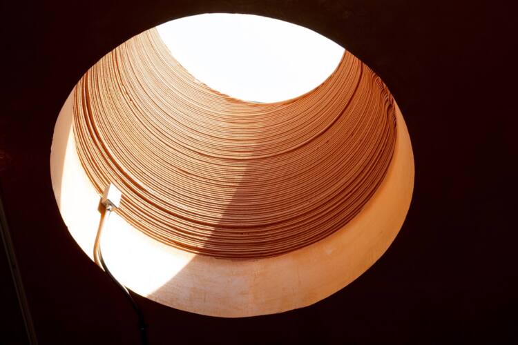 การดีไซน์ที่สะท้อนถึงความละเอียดอ่อนและศิลปะในการก่อสร้าง เกิดเป็นรูปทรงอาคารโค้งเว้าคล้ายกับปล่องภูเขาไฟ ลวดลายผนังอาคาร และการเลือกใช้โทนสีอิฐดินเผาเพื่อให้เห็นภาพชัดเจนยิ่งขึ้น