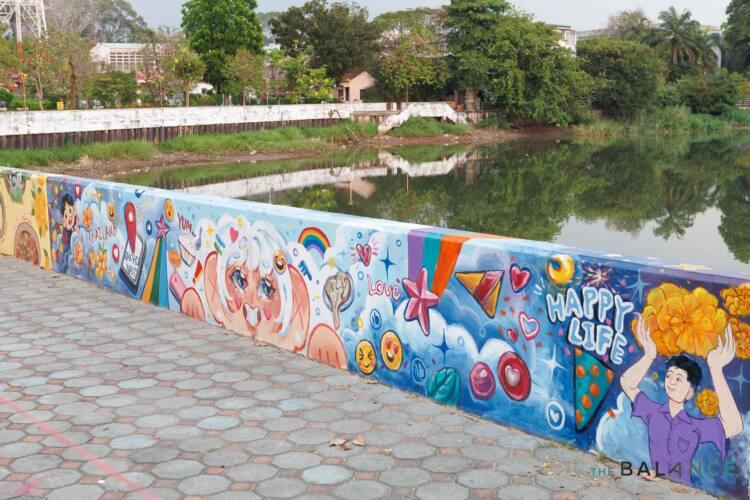 นครนายกยามเย็น ต้องพากันไปเดินเล่นชม Street Art ในตัวเมือง ซึ่งก่อนหน้านี้ มีผลงานสวย ๆ อยู่บริเวณถนนเสนาพินิจ ซอย 1 ใกล้กับ “Monkey Art” ที่พักของเราในค่ำคืนนี้