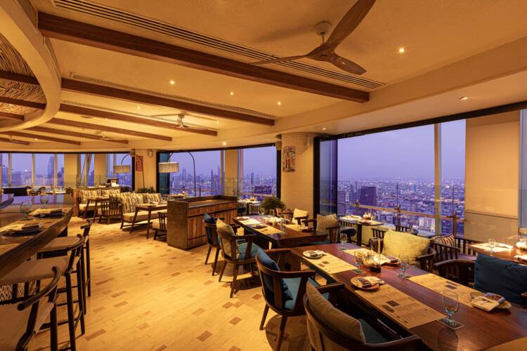 ด้วยความโดดเด่นขององค์ประกอบด้านดีไซน์ การตกแต่งด้วยการใช้แสงไฟ และเฉดสีฟ้าขาวทั่วห้องอาหารในบรรยากาศศิลปะแบบมัวริช เชื่อมโซนทั้ง 3 โซนเข้าไว้ด้วยกัน ทั้งโซนไวน์เซลล่า โซนทาปาสแอนด์รอว์บาร์ และโซนไดนิ่งเด็ค พร้อมด้วยสถานที่ตั้งอันงดงามชั้น 54 ของโรงแรมฯ ด้วยทิวทัศน์ที่น่าตรึงตาตรึงใจบนเส้นขอบฟ้ากลางกรุง ชมพระอาทิตย์ตกยามเย็น