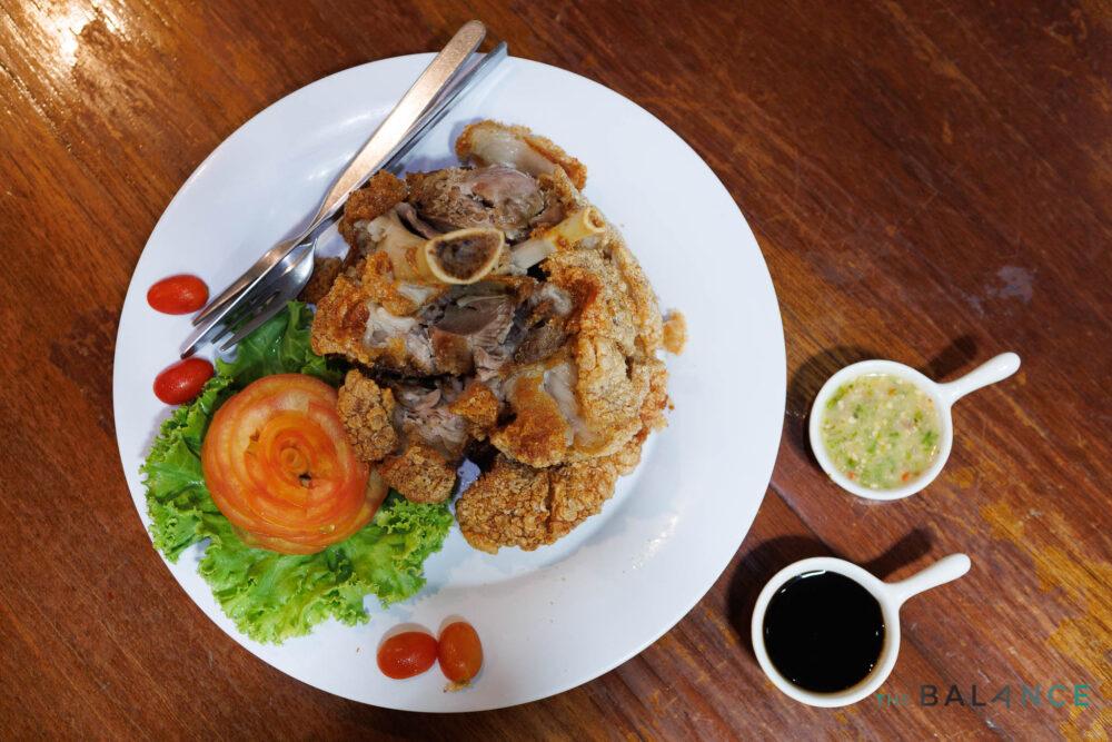 นอกจากอาหารจากการออกเรือประมงแล้ว แถบชายฝั่งสามร้อยยอดก็มีการทำบ่อเลี้ยงกุ้งเลี้ยงปลาอีกหลายแห่ง หากมุ่งหน้าไปถ้ำพระยานคร ก็จะผ่านหนึ่งในร้านอาหารที่มีบ่อปลาของตัวเองบนพื้นที่ราว 20 ไร่ รายล้อมด้วยทิวเขาอันอลังการ ที่นี่คือ “ครัวลัดดา” (Ladda Restaurant)
